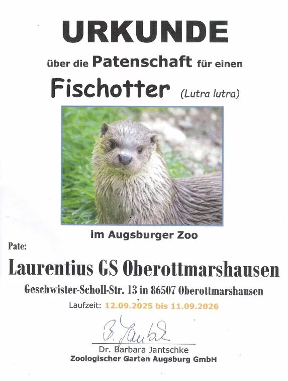 Auch in diesem Schuljahr haben die Kinder aus Oberottmarshausen ein Zoo-Patentier gewählt. Diesmal gewann der "Fischotter":