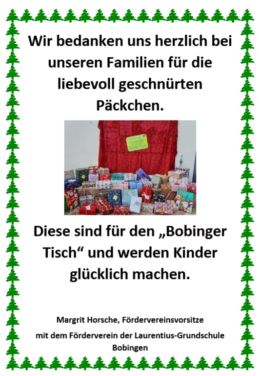 Anlässlich dieser Veranstaltung organisierte der Förderverein eine Päckchenpackaktion.