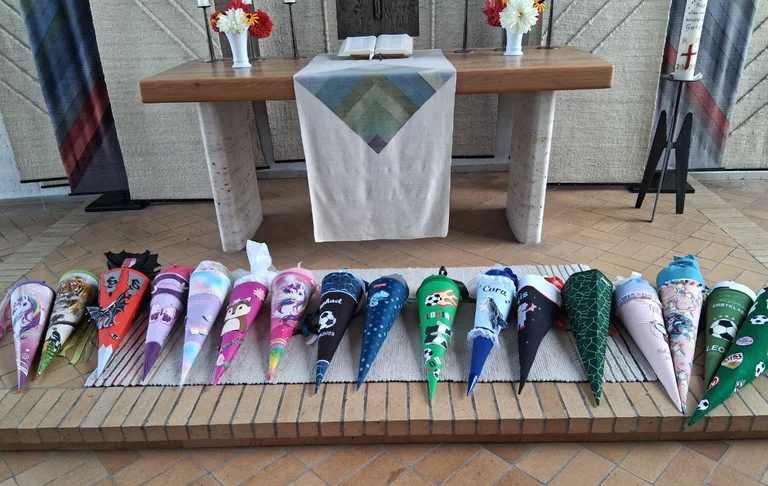 Auch dieses Schuljahr bringen unsere Erstklasskinder ihre Schultüten mit zum Gottesdienst: