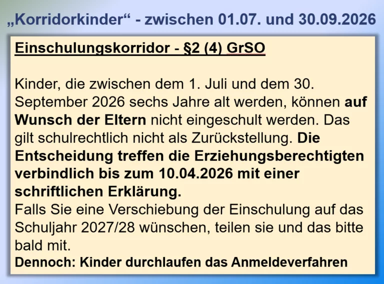 Die Mittagsbetreuung startet für unsere Erstklässler am 2. Schultag, ab Mittwoch, 16.09.2026.