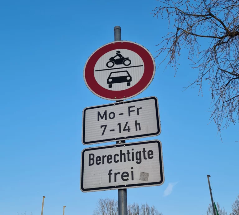 Es ist verboten, in den Fußgängerbereich bei den Lehrerparkplätzen einzufahren (Verbotsschild)!